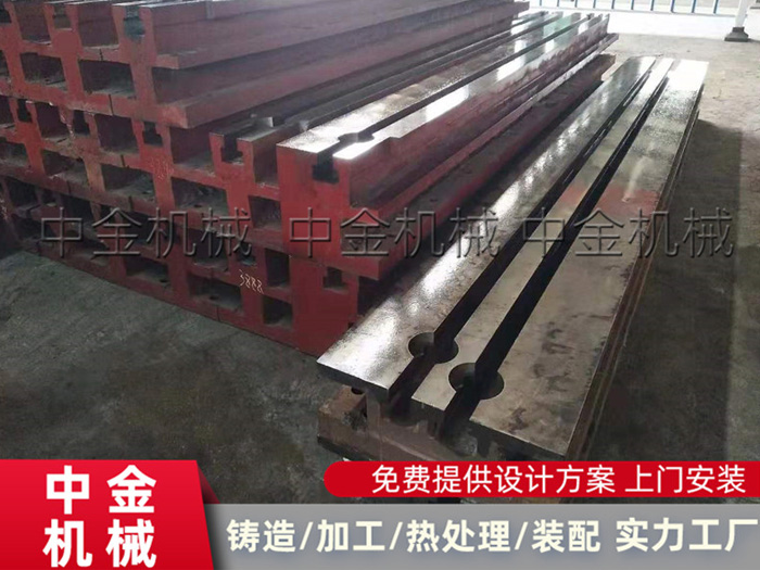T型槽地軌的材質(zhì): 高強度鑄鐵HT200-300,工作面硬度為HB170-240,經(jīng)過兩次人工處理(人工退火600度-700度和自然時效)使該產(chǎn)品的精度穩(wěn)定,耐磨性能好.